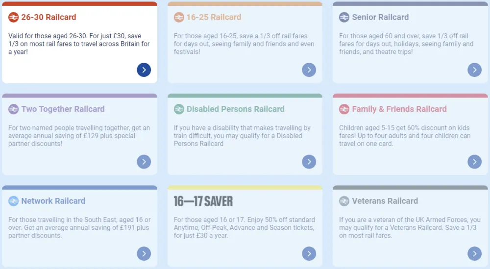 아래의 사진과 같이 해당되는 Railcard를 찾을 수 있습니다.